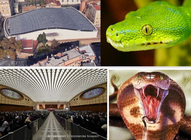Reptilians are in the Vatican - Look at this picture of the Vatican's Audience Hall and it is designed to look like a snake head. They tend to hide things in plain sight. Are We Praying to the Wrong God?