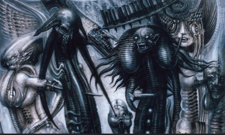 H R GIGER's artwork, see image below is one of his artworks displaying Transhumanism. Like the "Borg" in the "Star Trek" series, machines and Humans are combined to make better slaves. Also, Reptilian-Human people are also modified.
