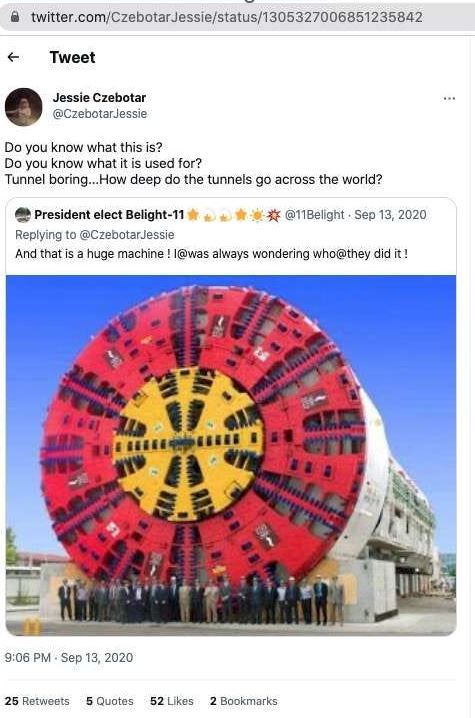 Jessie Czebotar explains: Those tunnel machines are called the Alice tunnel borers. Alluding to Alice in Wonderlandin which she meets the white rabbit and falls down the deep tunnel to see the truth beneath the surface. Also, it is worth noting that those borers have what looks like the Walmart star on the front of them that melts and glasses the rocks in the ground. 25 meters=83 feet. 800 meters=2,640 feet. In case anyone was wondering about the equivalents. It is worth mentioning that the tunnels were opened with very advanced technology, using a special laser machine, which can open a 7-mile tunnel per day.