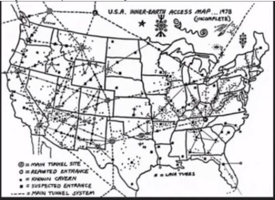 Some people claim that there are even tunnels going to the center of the earth. There are maps below on Tunnel Systems and DUMBs all over the world and in the USA with underground tunnels all over like Dulse Base, NM, Los Alamos Lab, NM, and Four Corners Area. Some of those tunnels connect to Denver International Airport and Area 51, NV. Also, check out the Underground Tunnels and DUMBs maps. We really should wonder if they are feeding some beasts in the underground since all those people and kids going missing?